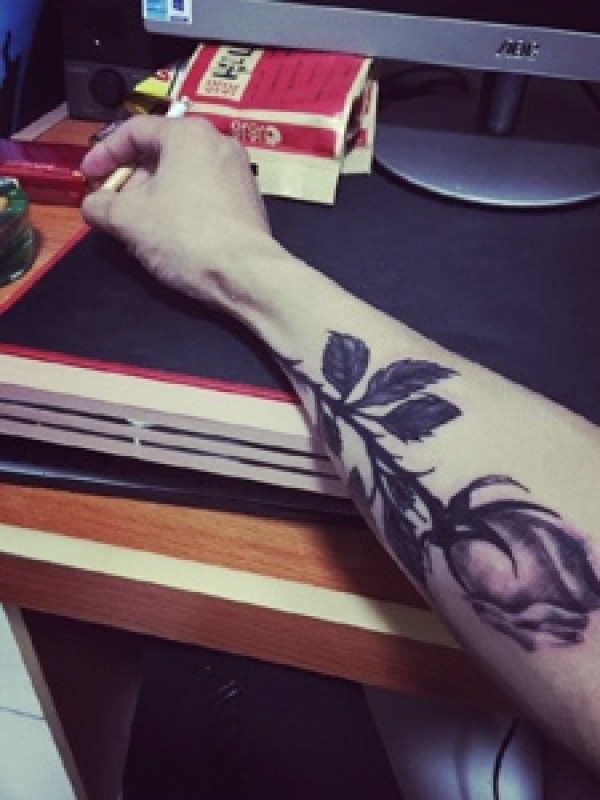 欧美玫瑰纹身 男生手臂上花朵纹身图片