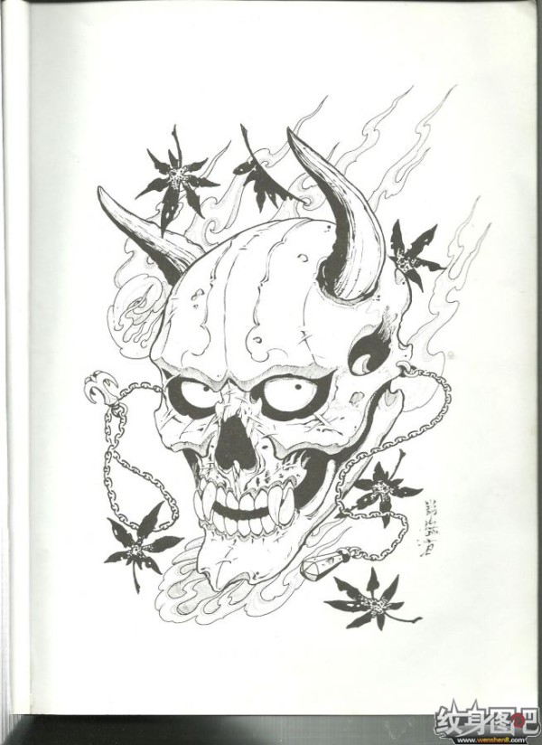 能面万媚纹身手稿_52张日式能剧面具纹身手稿图案素材欣赏