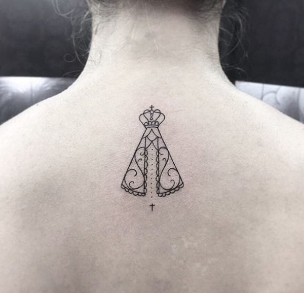 女生后腰纹身黑白灰风格抽象线条纹身图案