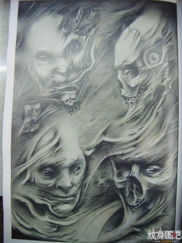 能面万媚纹身手稿_52张日式能剧面具纹身手稿图案素材欣赏