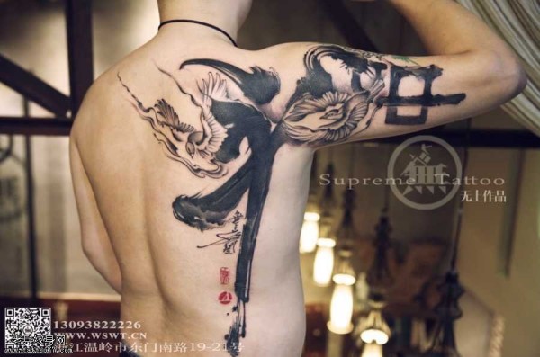 水墨鸽纹身