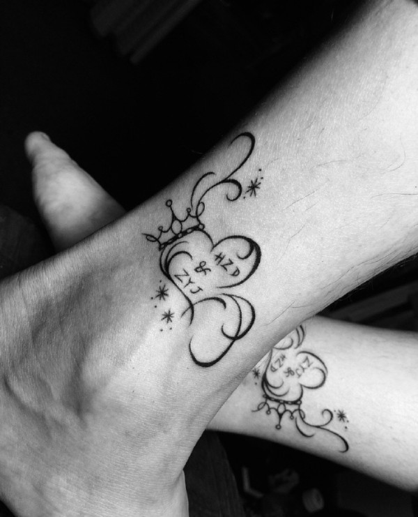 脚腕上的可爱小图案情侣纹身刺青
