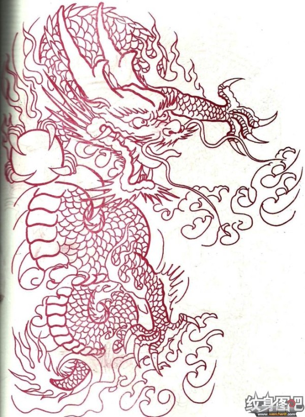 龙纹身手稿_一组老传统黑灰龙手稿纹身图案