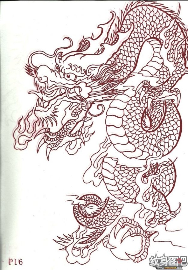 龙纹身手稿_一组老传统黑灰龙手稿纹身图案