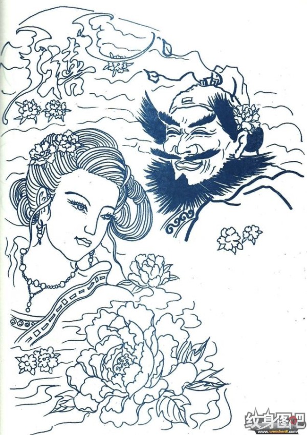 能面万媚纹身手稿_52张日式能剧面具纹身手稿图案素材欣赏