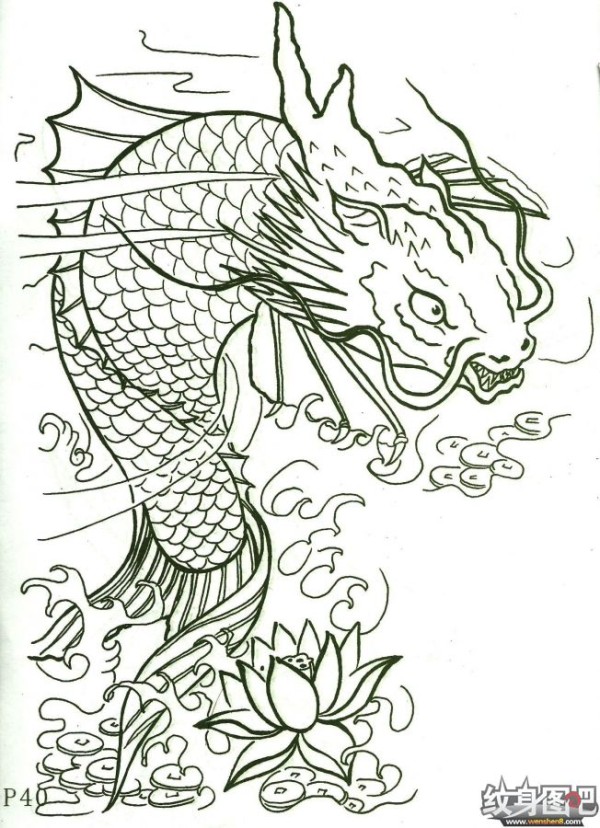 龙纹身手稿_一组老传统黑灰龙手稿纹身图案