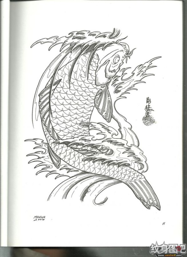 雕猛者鱼纹身手稿高清大图