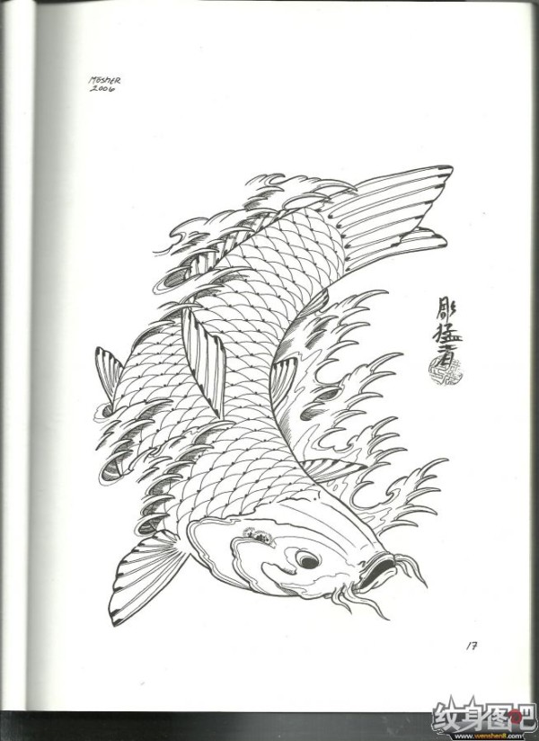 双鱼座纹身手稿_45张十二星座之双鱼手稿纹身图案