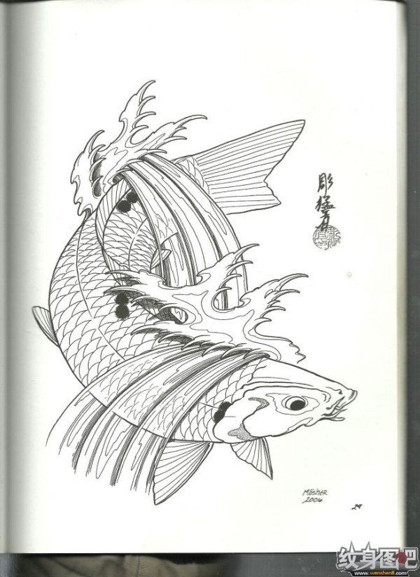 雕猛者鱼纹身手稿高清大图