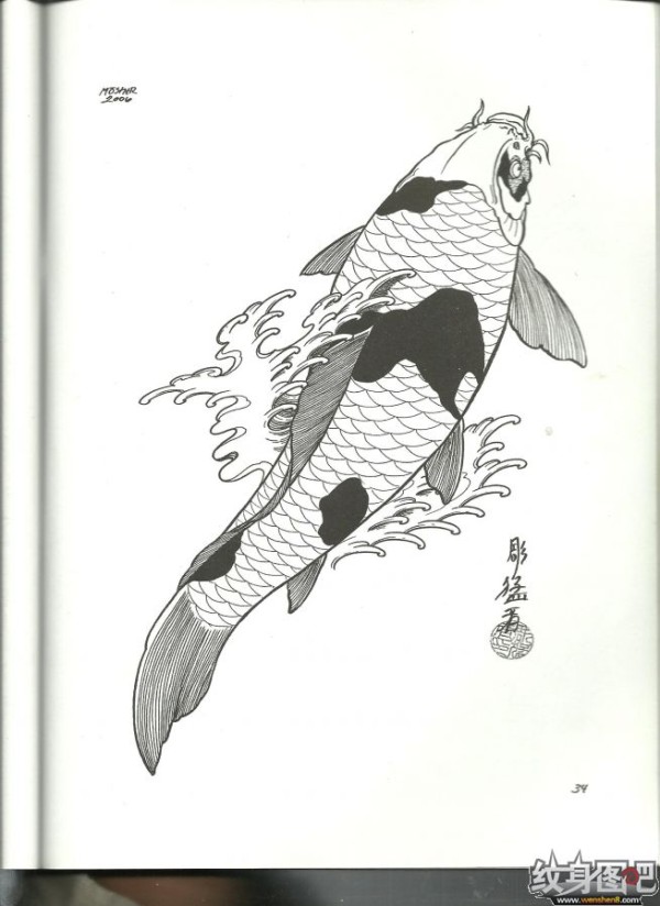 雕猛者鱼纹身手稿高清大图