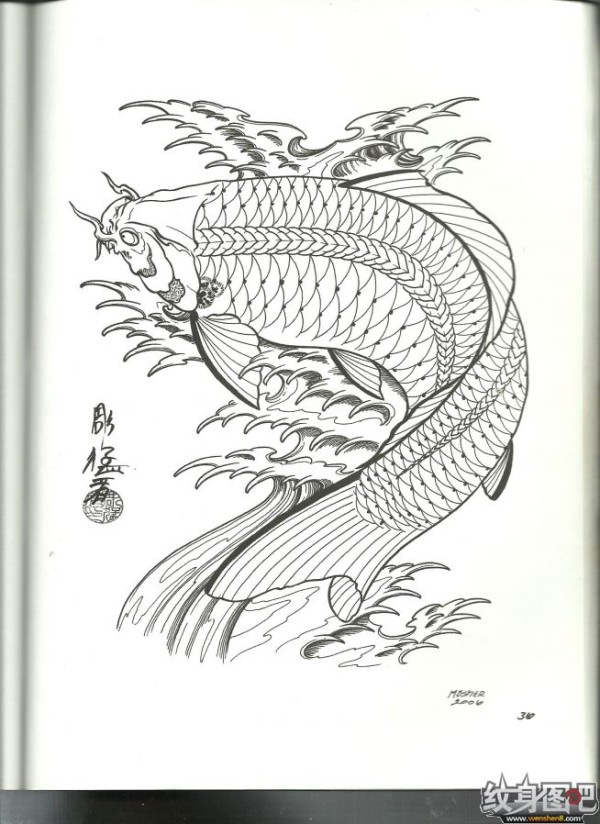 雕猛者鱼纹身手稿高清大图