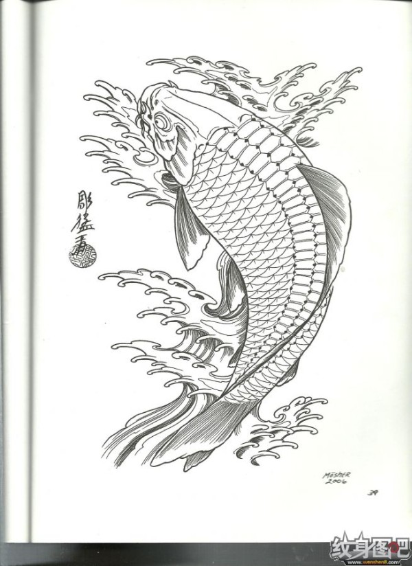雕猛者鱼纹身手稿高清大图
