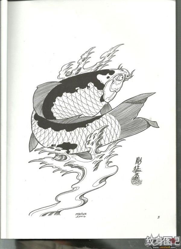 雕猛者鱼纹身手稿高清大图