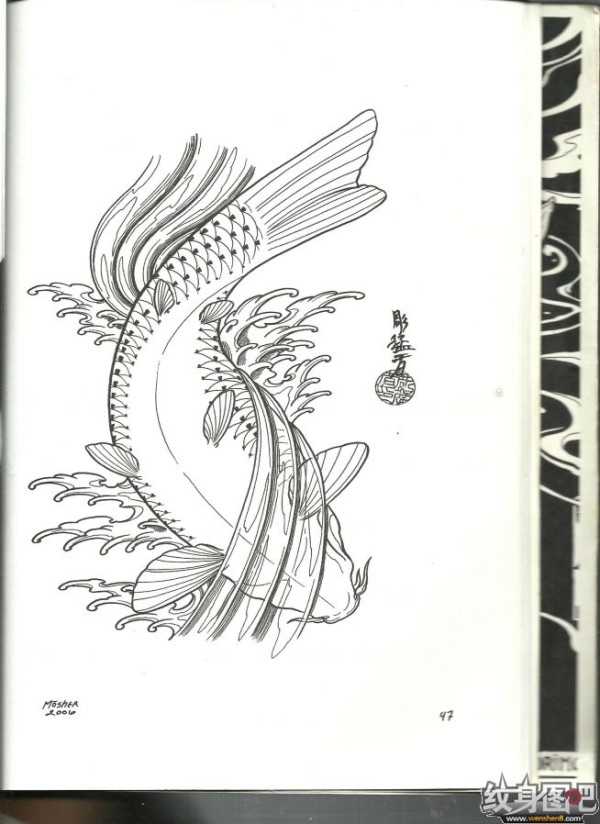 雕猛者鱼纹身手稿高清大图