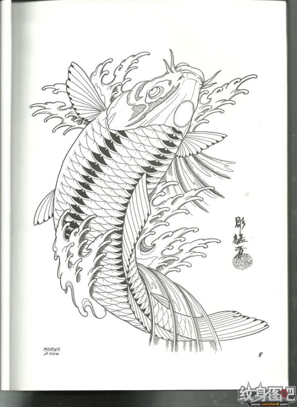 雕猛者鱼纹身手稿高清大图