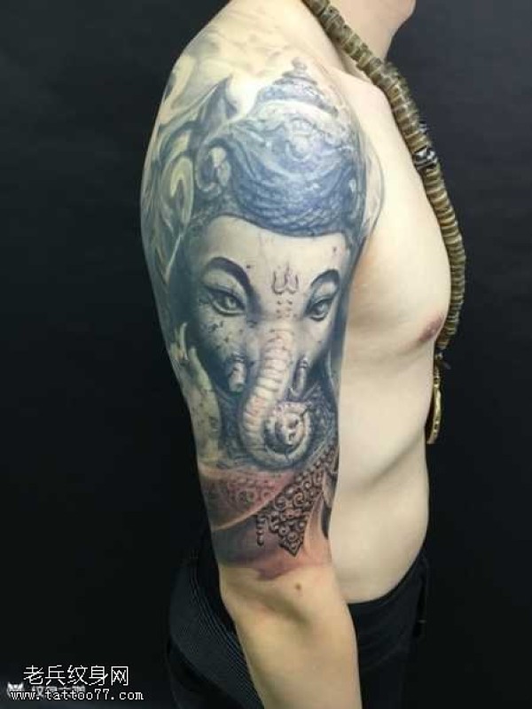 手臂黑灰象神_一组12张手臂上的黑灰象神纹身图案作品欣赏
