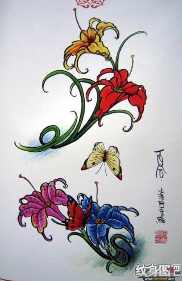 《蝶恋花》花花草草类纹身手稿