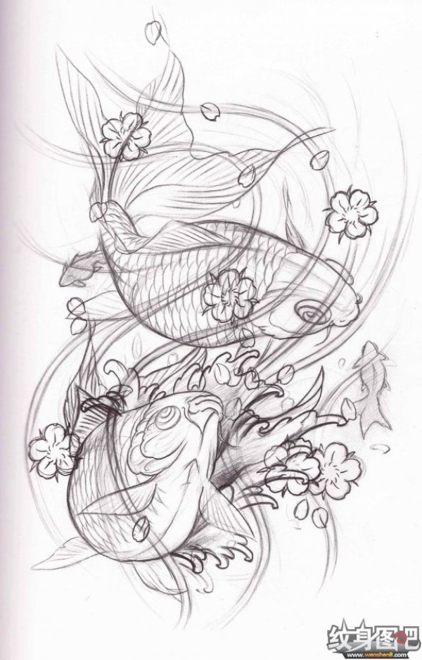 双鱼座纹身手稿_45张十二星座之双鱼手稿纹身图案