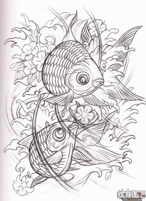 双鱼座纹身手稿_45张十二星座之双鱼手稿纹身图案