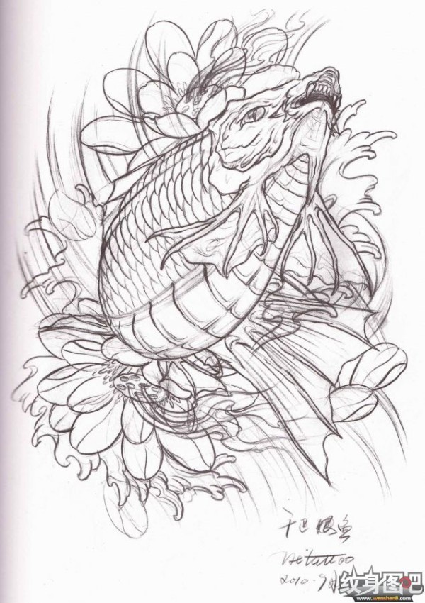 双鱼座纹身手稿_45张十二星座之双鱼手稿纹身图案
