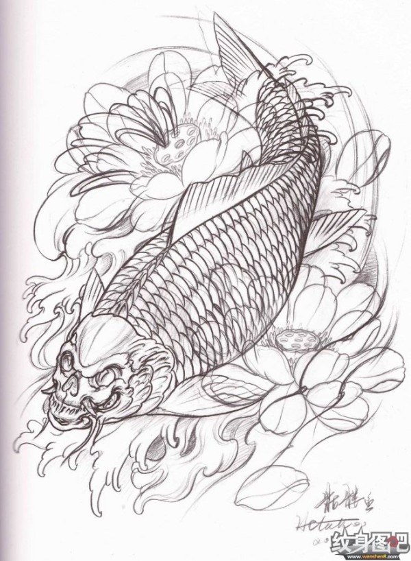 双鱼座纹身手稿_45张十二星座之双鱼手稿纹身图案