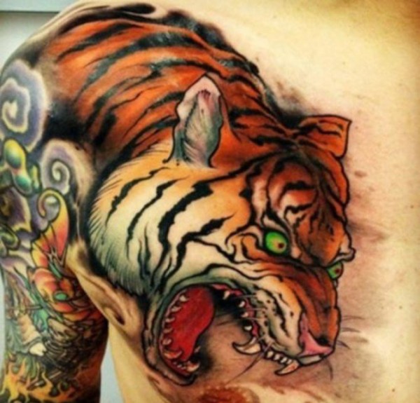 霸气半胛老虎纹身_动物纹身图案大全_纹身图吧