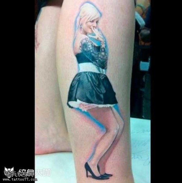 花腿纹身--一组大黑腿纹身图案作品欣赏