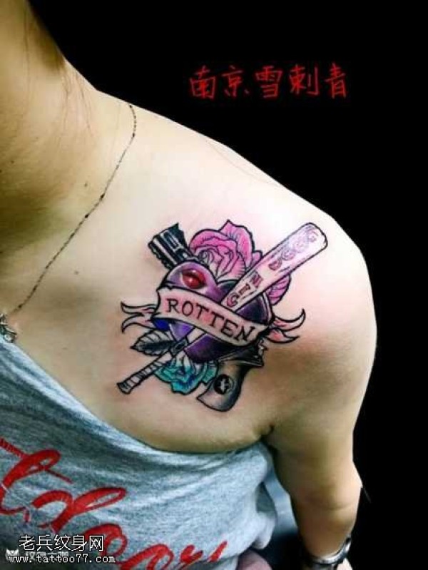 胸部心棒纹身图案