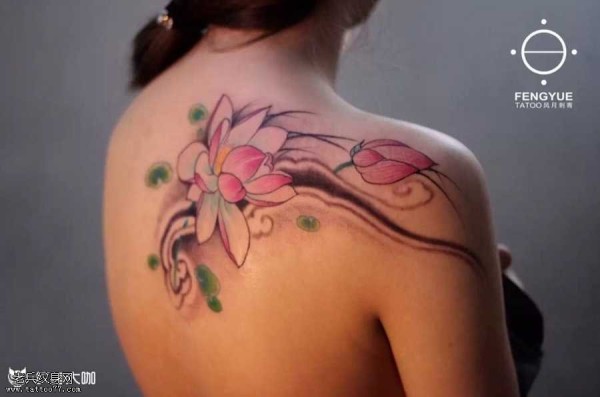 女生肩花纹身_15张女性双肩对称的肩花纹身图案作品图片