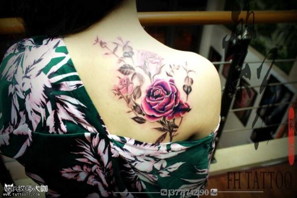 后肩唯美花藤英文图案图片_植物纹身图案大全_纹身图吧