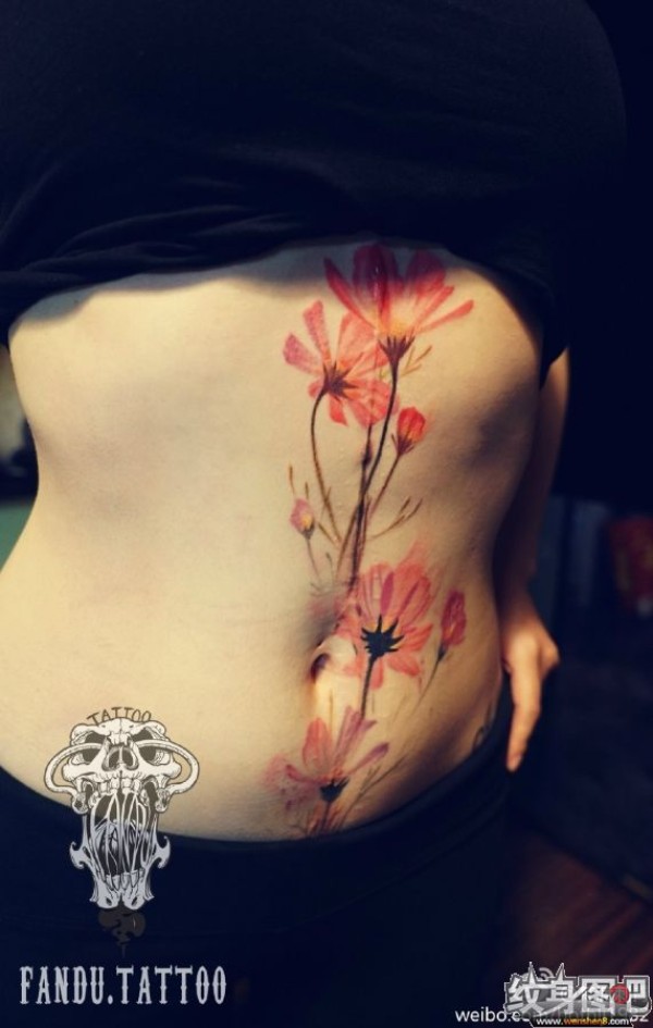 彩色小清新植物纹身小花朵纹身图案