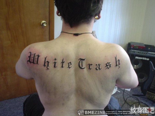 背部黑色拉丁字母纹身