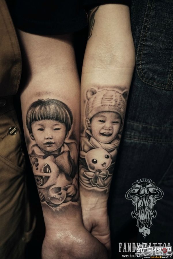 父母把孩子的照片和生日纹在了身上~