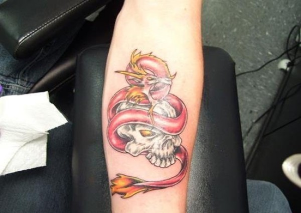 超帅时尚的黑灰骷髅与蛇纹身图案