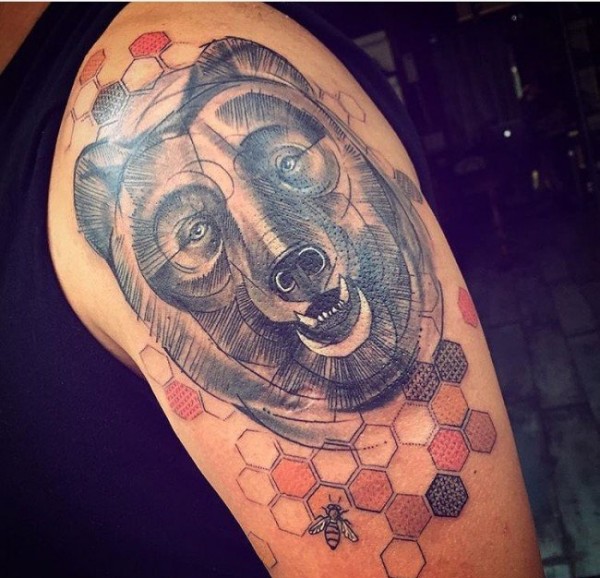 手大臂膀上各种帅气的熊纹身图案