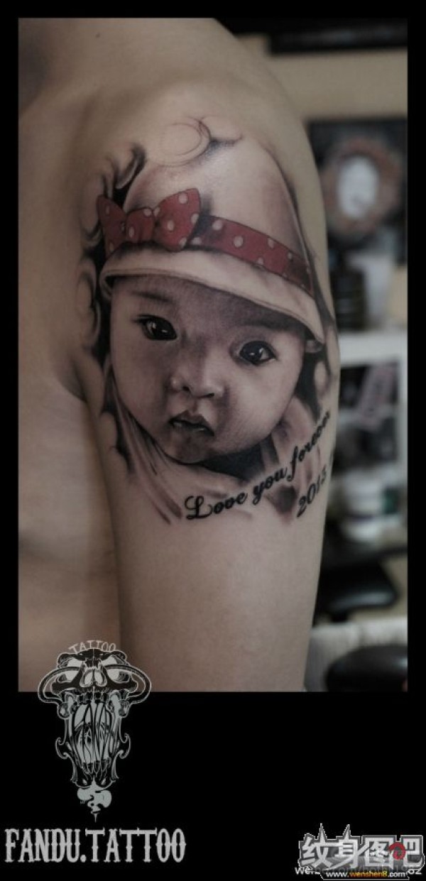 女性肩部肖像刺青_肖像纹身图案大全_纹身图吧