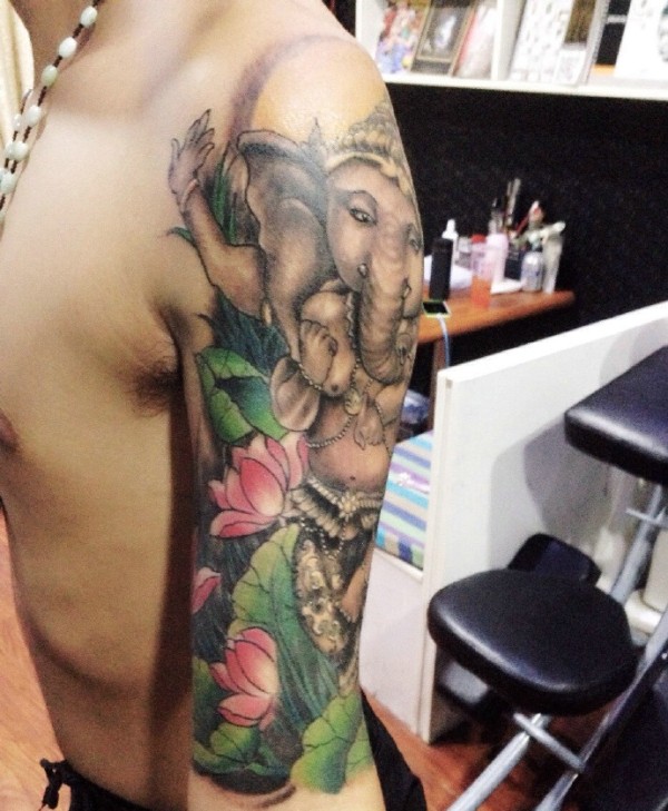 手臂黑灰象神_一组12张手臂上的黑灰象神纹身图案作品欣赏