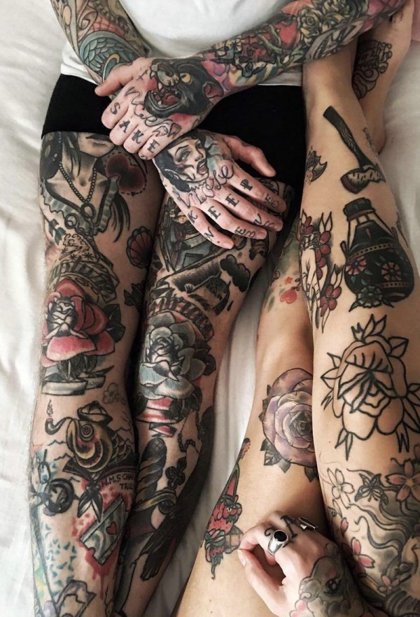 让人眼花缭乱的腿部情侣图腾纹身图案
