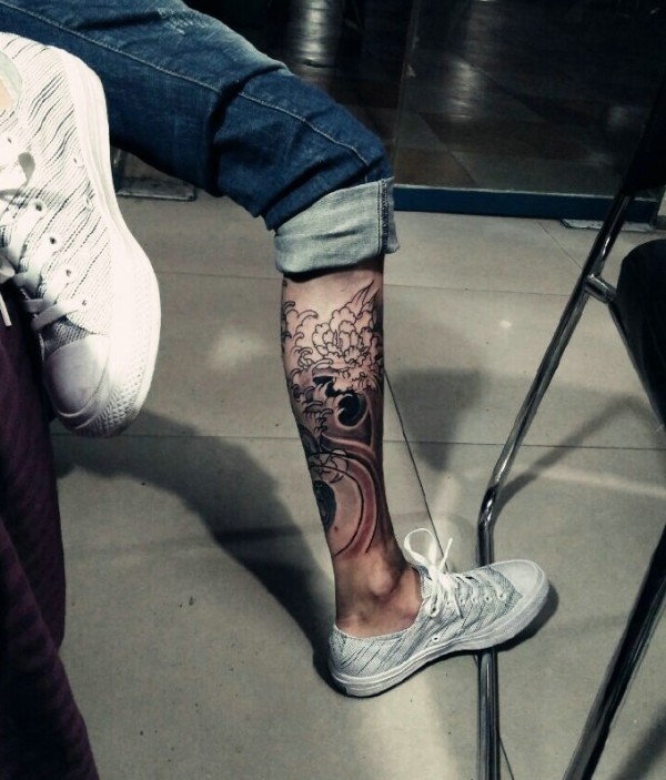 传统鲤鱼花小腿纹身_腿部纹身图案大全_纹身图吧