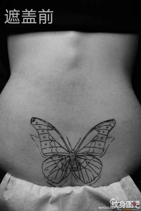 分享一款腰部时尚性感的蝶恋花纹身图案_腰部纹身图案大全_纹身图吧