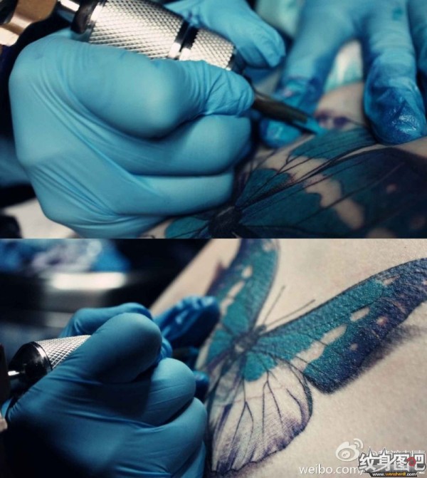 分享一款腰部时尚性感的蝶恋花纹身图案_腰部纹身图案大全_纹身图吧