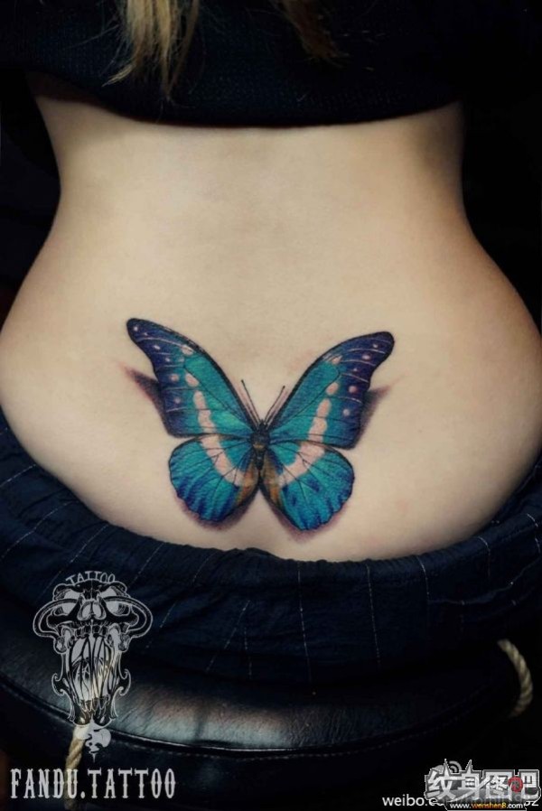 分享一款腰部时尚性感的蝶恋花纹身图案_腰部纹身图案大全_纹身图吧
