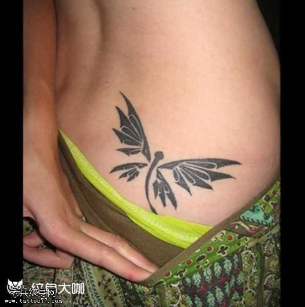 腰部蜻蜓图腾纹身图案