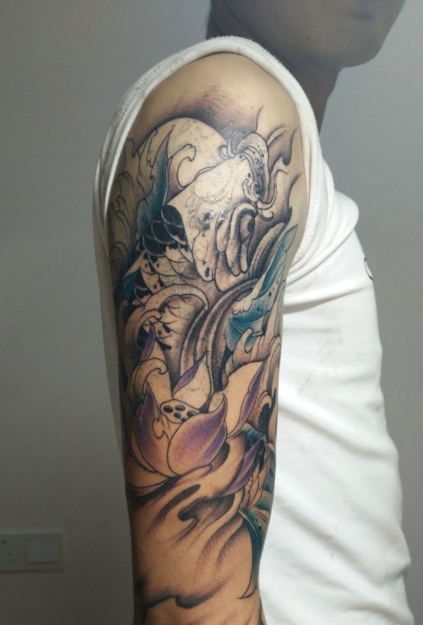 手臂莲花蛇纹身图案_臂部纹身图案大全_纹身图吧
