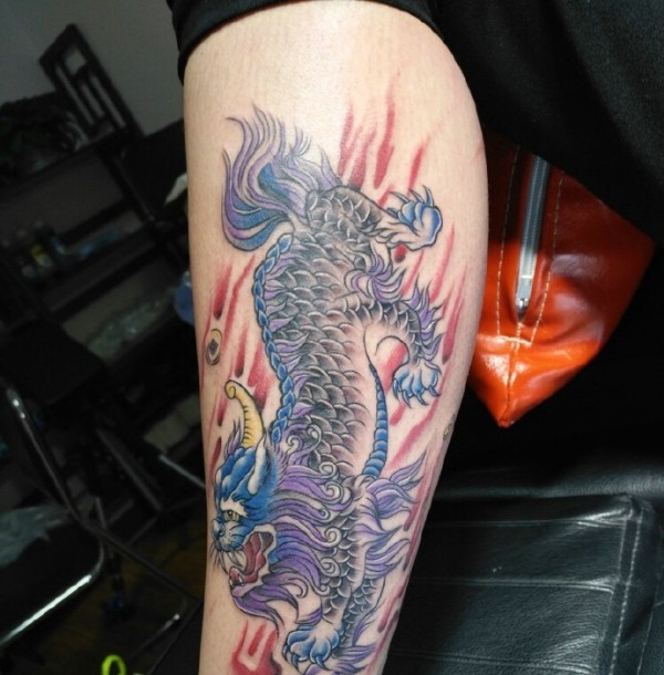 手臂传统经典貔貅纹身图案
