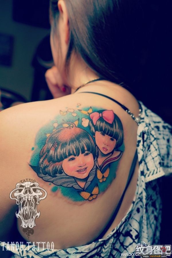 女性肩部肖像刺青_肖像纹身图案大全_纹身图吧