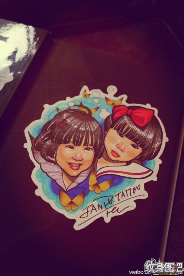 清纯女孩腿上可爱肖像纹身图片_肖像纹身图案大全_纹身图吧