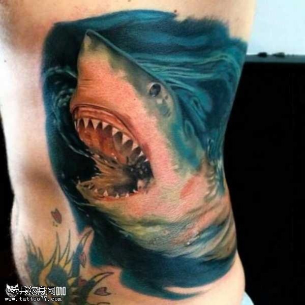 腰部鲨鱼纹身图案
