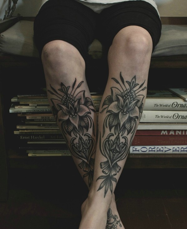 花腿纹身--一组大黑腿纹身图案作品欣赏