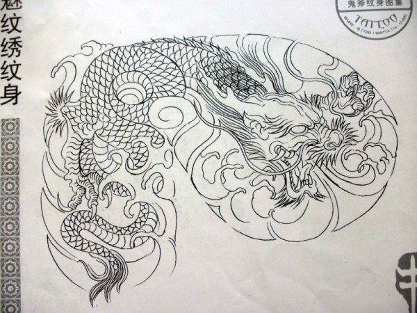 龙纹身手稿_一组老传统黑灰龙手稿纹身图案